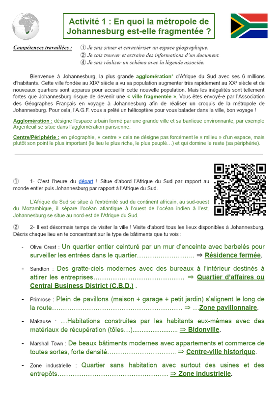 CORRECTION Activité 1 : En quoi la métropole de Johannesburg est-elle fragmentée ?