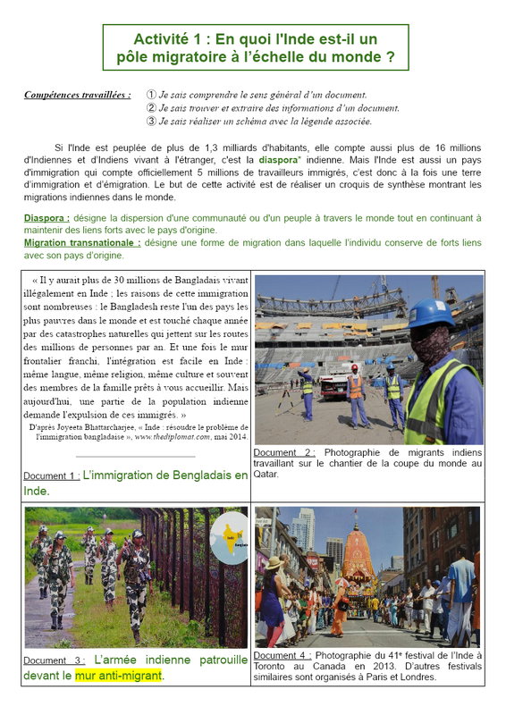 Activité 1 : En quoi l'Inde est-il un pôle migratoire à l’échelle du monde ?