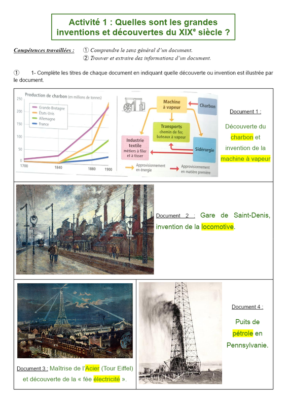 CORRECTION Activité 1 : Quelles sont les grandes inventions et découvertes du XIXe siècle ?
