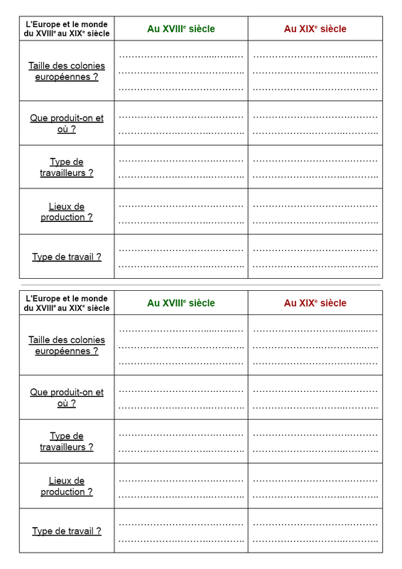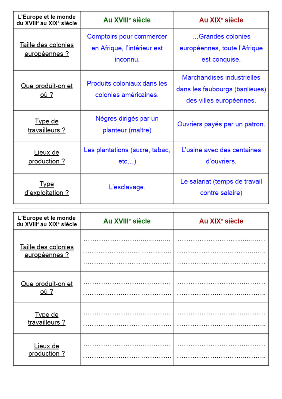 L'Europe et le monde du XVIIIe au XIXe siècle Au XVIIIe siècle Au XIXe siècle Taille des colonies européennes ? Comptoirs pour commercer en Afrique, l’intérieur est inconnu. …Grandes colonies européennes, toute l’Afrique est conquise. Que produit-on et où ? Produits coloniaux dans le...