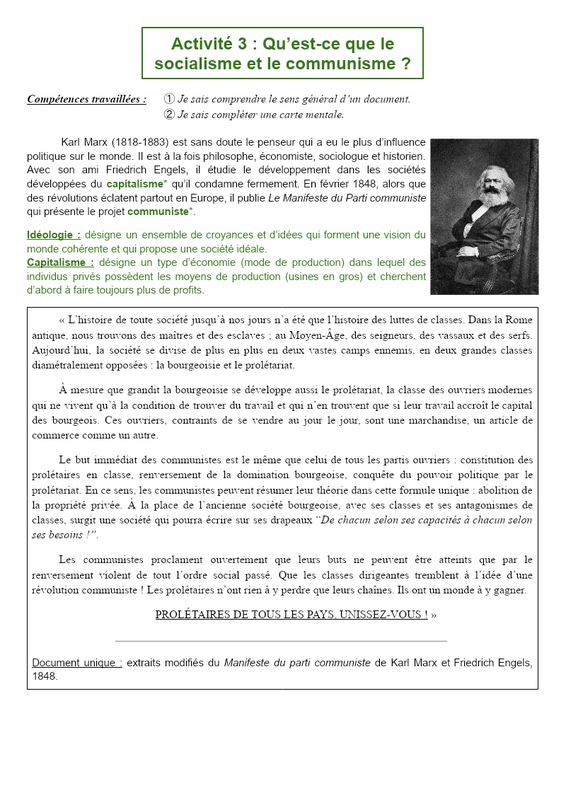 Activité 3 : Qu'est-ce que le socialisme et le communisme ?
